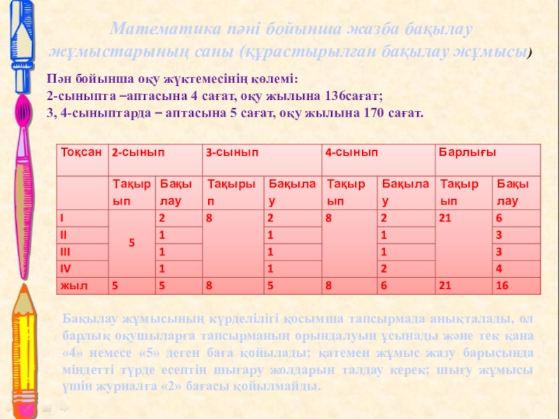 3, 4-сыныптарда – аптасына 5 сағат, оқу жылына 170 сағат.