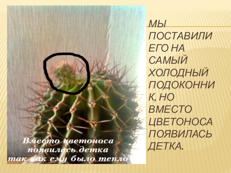 Слайд 2Мы поставили его на самый холодный подоконник, но вместо цветоноса появилась