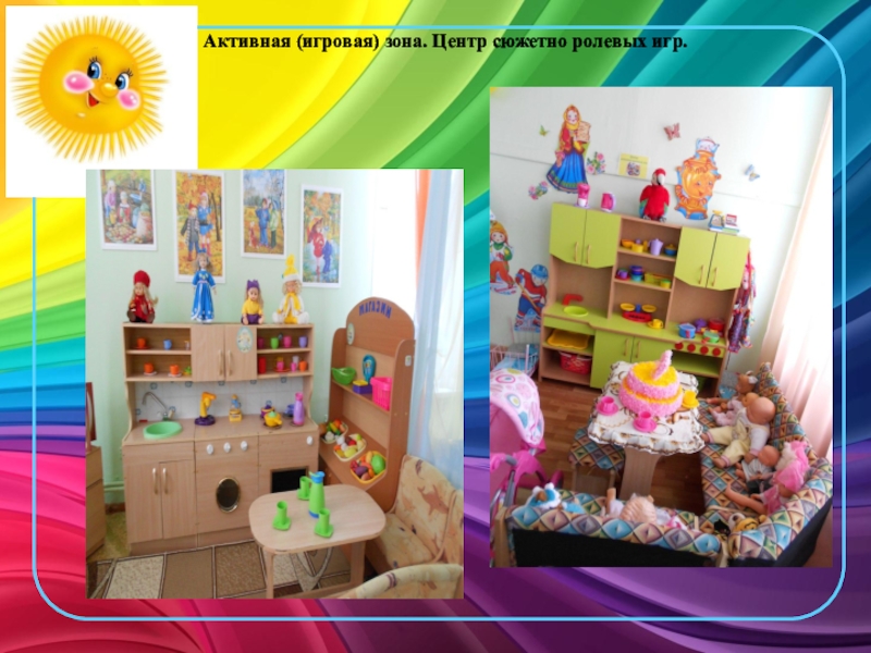 Слайд 24Активная (игровая) зона. Центр сюжетно ролевых игр.