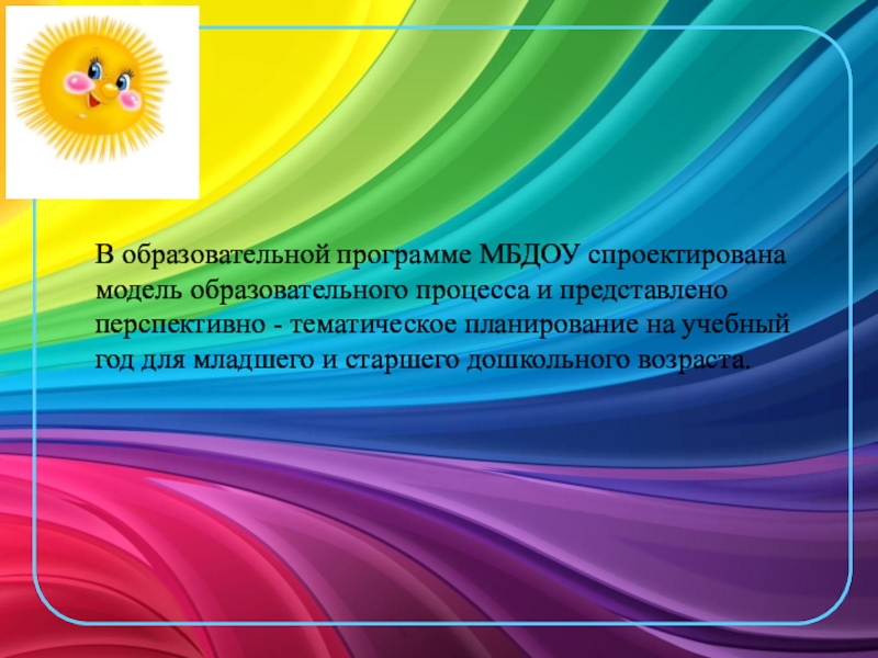 Слайд 4В образовательной программе МБДОУ спроектирована модель образовательного процесса и представлено перспективно