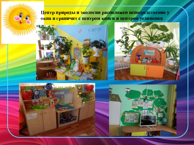 Слайд 16Центр природы и экологии расположен непосредственно у окна и граничит с