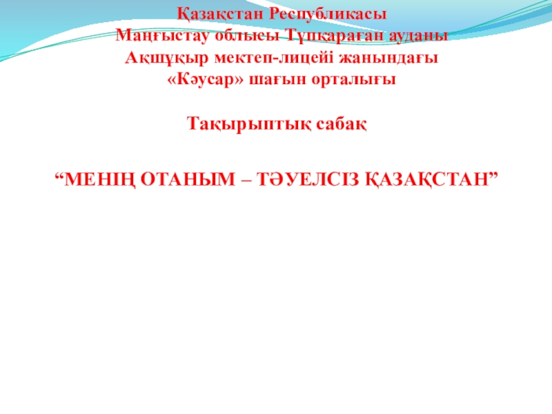 “МЕНІҢ ОТАНЫМ – ТӘУЕЛСІЗ ҚАЗАҚСТАН”