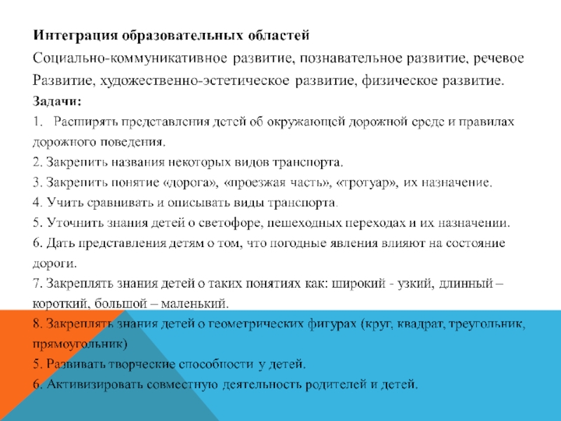 понятиях, а также знания правил поведения на дорогах города. - Будет привито желание выполнять данные правила самими и привлекать к этому родителей. - Сформируются представления и закрепятся знания о разнообразии видов транспорта и транспортных средствах, а также пешеходных переходах, дорожных знаках. - Пополнение развивающей среды различными пособиями.