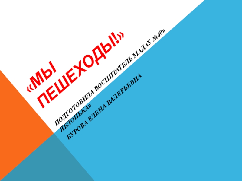 «Мы ПЕШЕХОДЫ!»ПОДГОТОВИЛА ВОСПИТАТЕЛЬ МАДАУ №40»ЯБЛОНЬКА»БУРОВА ЕЛЕНА ВАЛЕРЬЕВНА