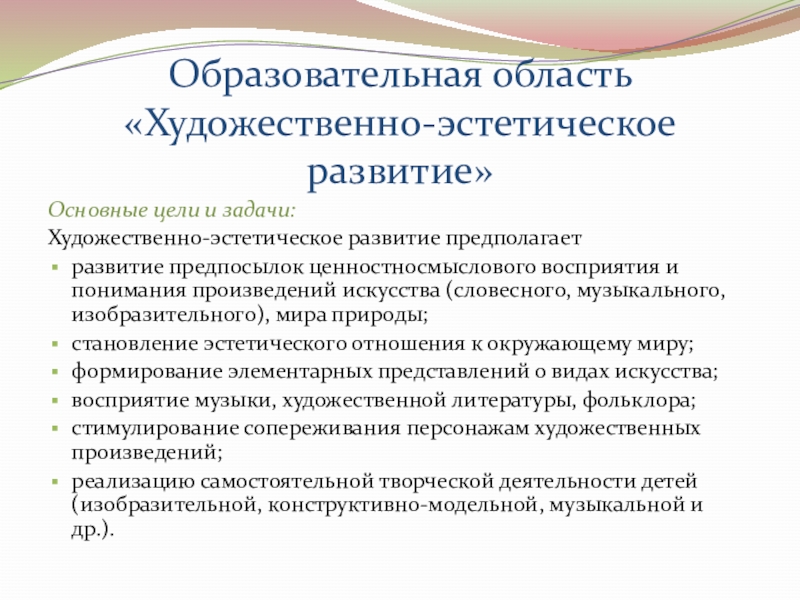 Художественно-эстетическое развитие предполагает