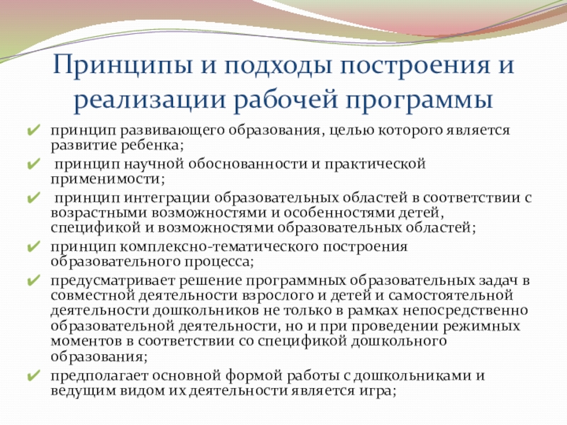 Слайд 6Принципы и подходы построения и реализации рабочей программы