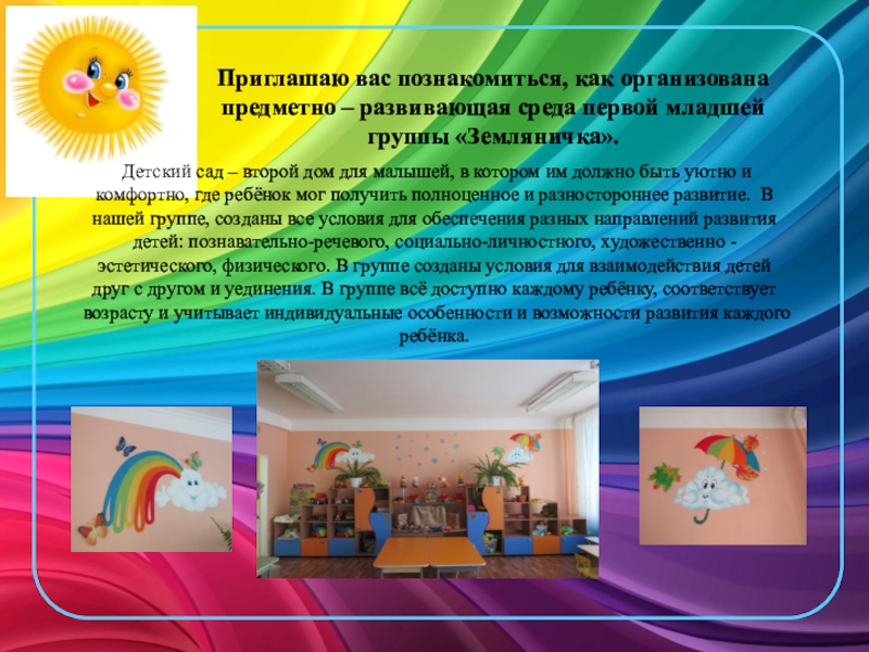 Слайд 6Приглашаю вас познакомиться, как организована предметно – развивающая среда первой младшей