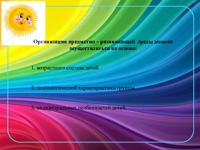 Слайд 5Организация предметно – развивающей среды должна осуществляться на основе:
