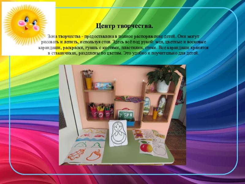 Зона творчества - предоставлена в полное распоряжение детей. Они могут