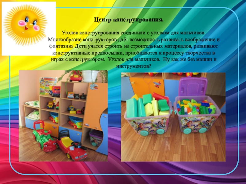 Уголок конструирования соединили с уголком для мальчиков. Многообразие конструкторов даёт
