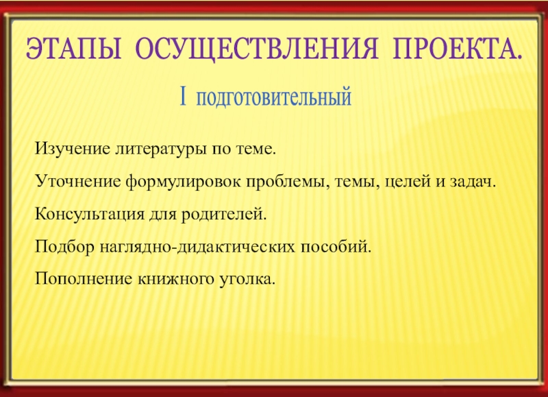 ЭТАПЫ ОСУЩЕСТВЛЕНИЯ ПРОЕКТА.I подготовительный