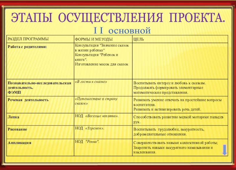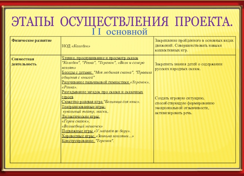 ЭТАПЫ ОСУЩЕСТВЛЕНИЯ ПРОЕКТА.I I основной