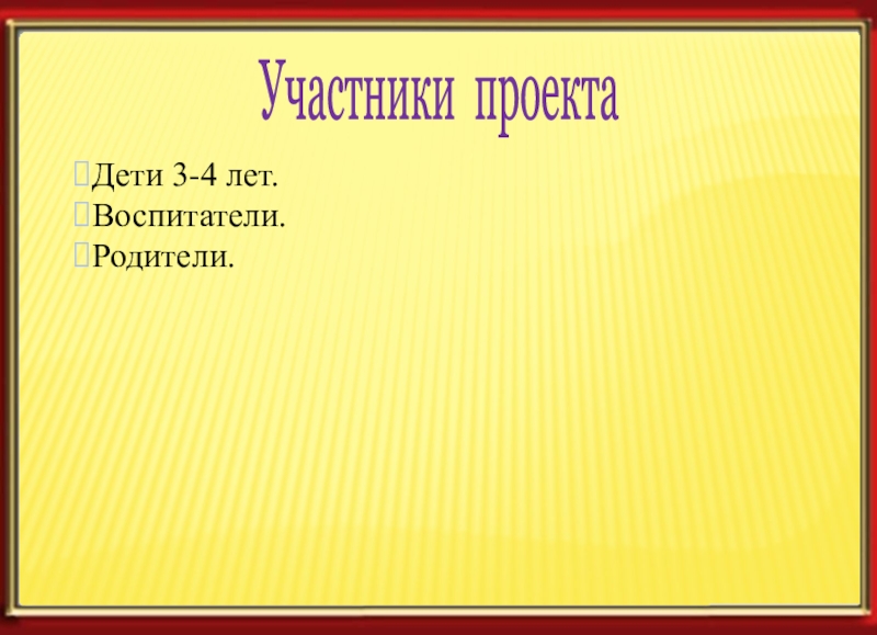 Участники проектаДети 3-4 лет.Воспитатели.Родители.