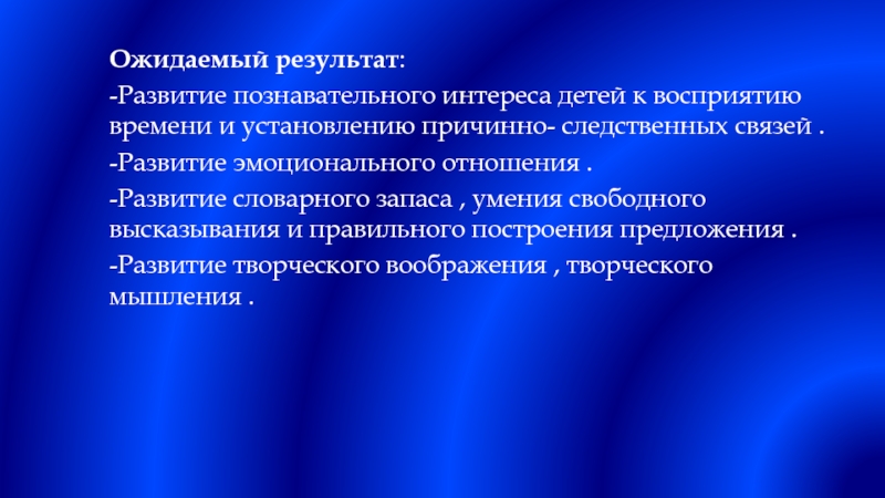 -Развитие познавательного интереса детей к восприятию времени и установлению причинно-