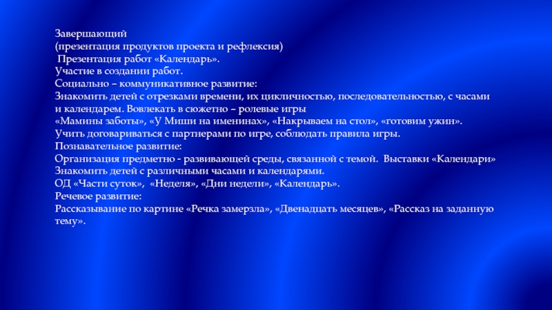 (презентация продуктов проекта и рефлексия)