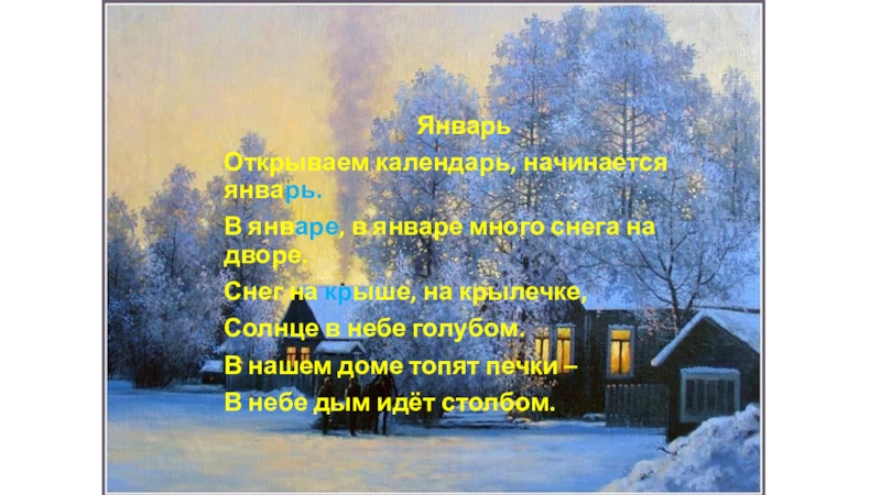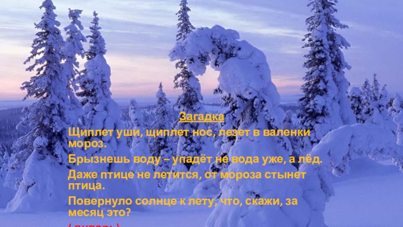 Слайд 9Январь – году начало, зиме середина. Дни становятся длиннее,