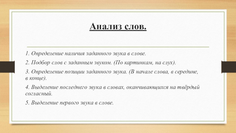 1. Определение наличия заданного звука в слове.