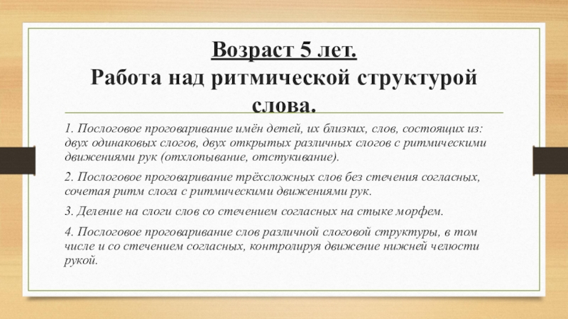 Работа над ритмической структурой слова.