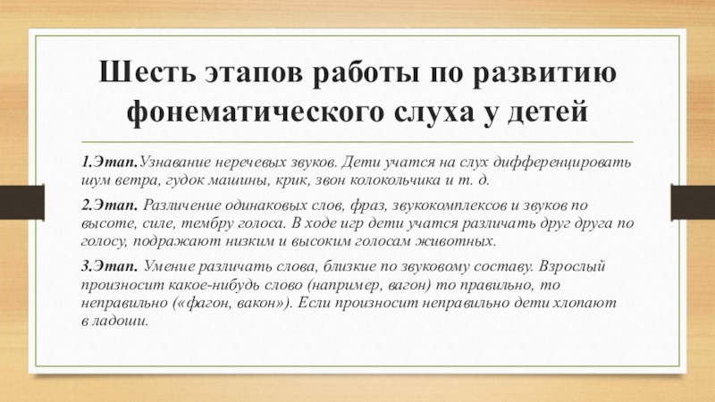 Шесть этапов работы по развитию фонематического слуха у детей