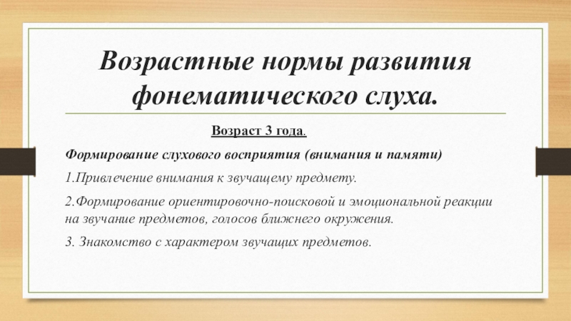 Слайд 6Возрастные нормы развития фонематического слуха.