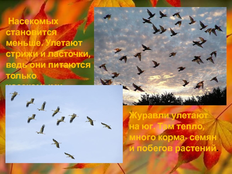 Журавли улетают на юг. Там тепло, много корма- семян и побегов растений.