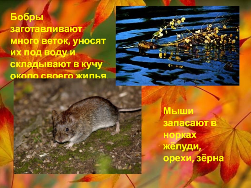 Мыши запасают в норках жёлуди, орехи, зёрна