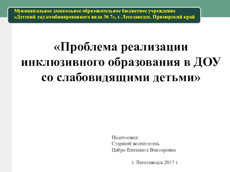 «Проблема реализации инклюзивного образования в ДОУ со слабовидящими детьми»
