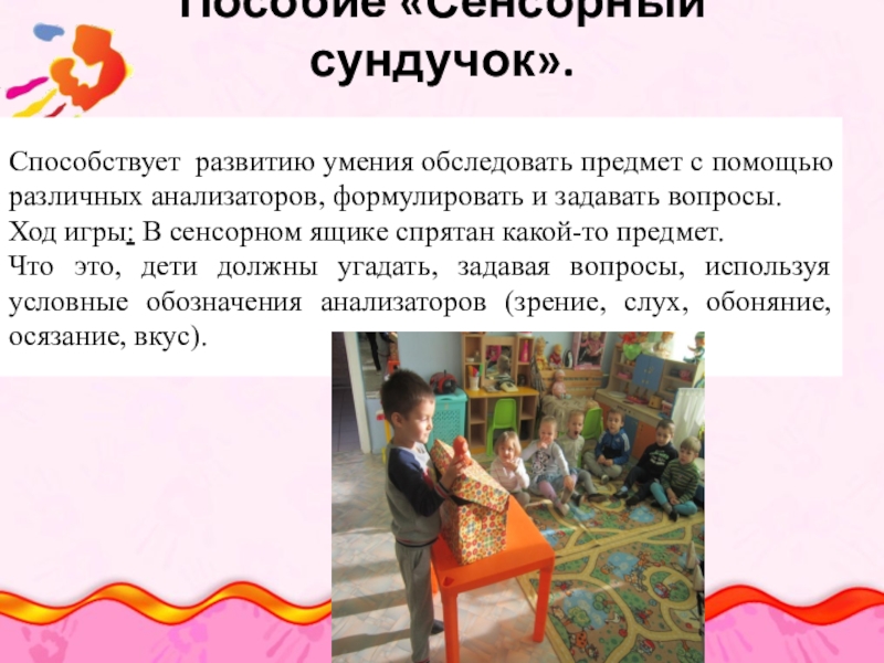 Слайд 8Пособие «Сенсорный сундучок».