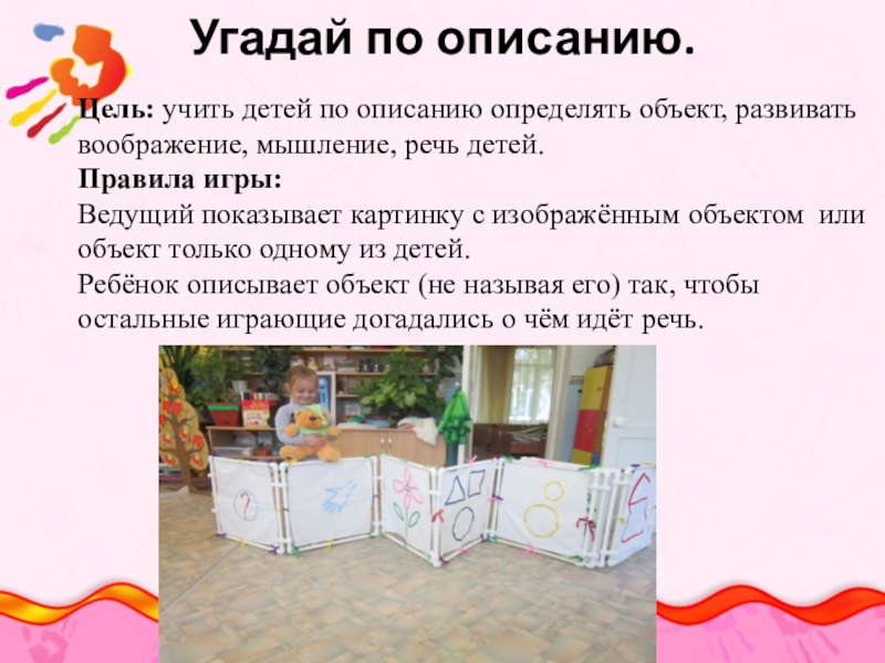 Ребёнок описывает объект (не называя его) так, чтобы остальные играющие догадались о чём идёт речь.