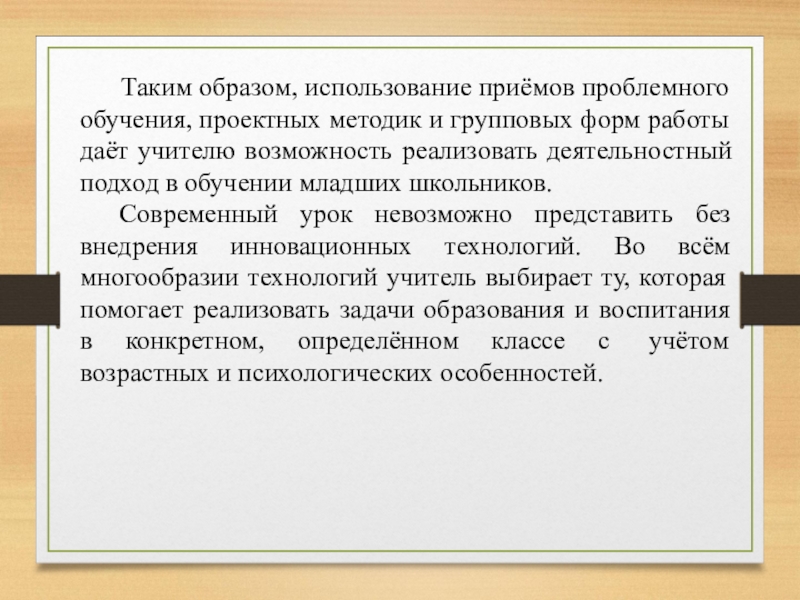 и групповых форм работы даёт учителю возможность реализовать деятельностный подход в обучении младших школьников.