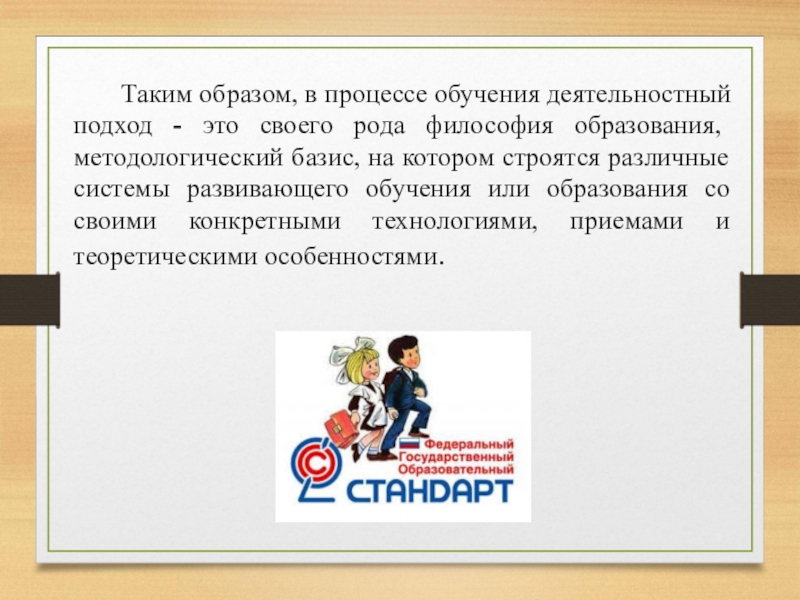Слайд 22 Таким образом, в процессе обучения деятельностный подход