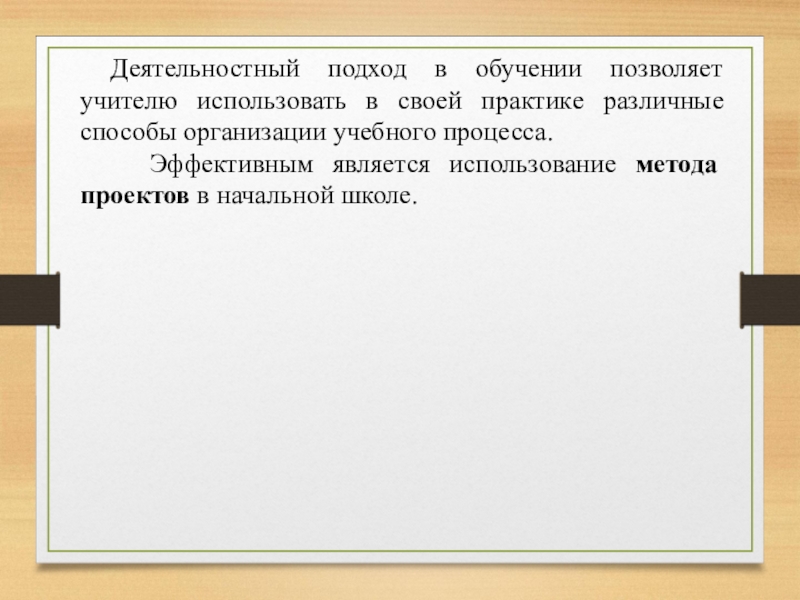 Слайд 8Деятельностный подход в обучении позволяет учителю использовать в своей практике различные