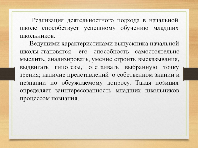 Слайд 21 Реализация деятельностного подхода в начальной школе способствует успешному обучению младших