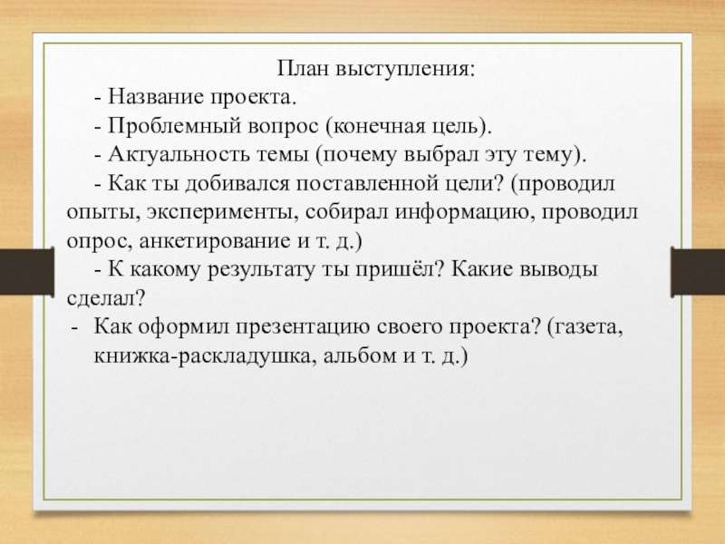 Как оформил презентацию своего проекта? (газета, книжка-раскладушка, альбом и т. д.)