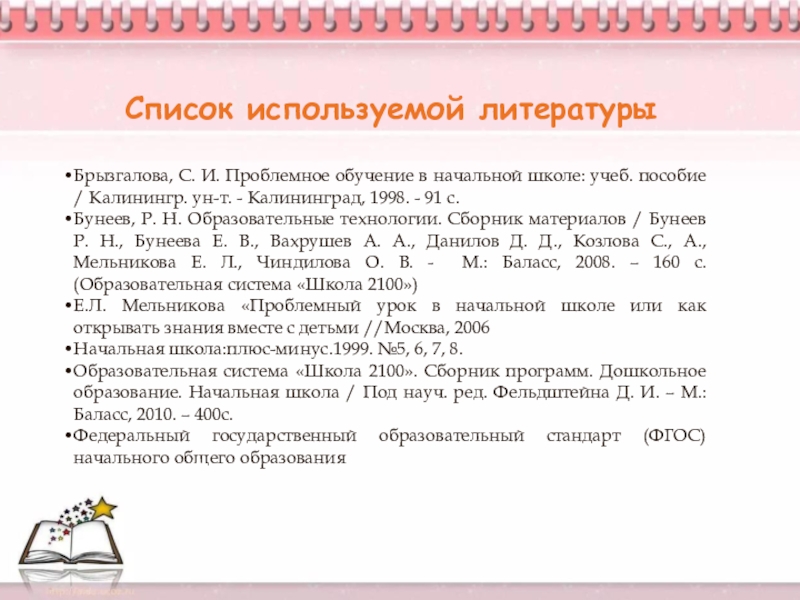 3. Мельникова Е.Л. Технология проблемного обучения //