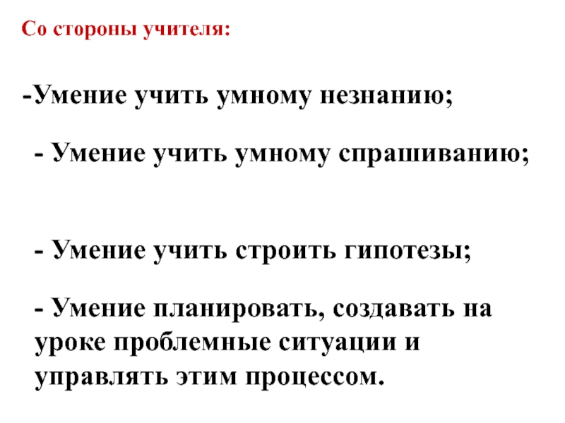 - Умение планировать, создавать на уроке проблемные ситуации и управлять этим процессом.