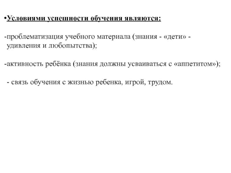 активность ребёнка (знания должны усваиваться с «аппетитом»);