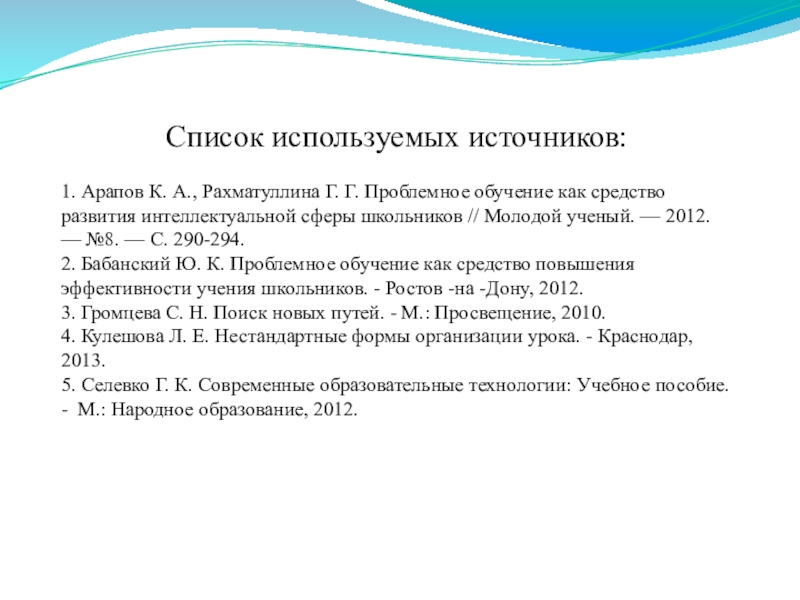 Сегодня под проблемным обучением понимается такая организация учебных занятий, которая предполагает создание под руководством учителя проблемных ситуаций и активную самостоятельную деятельность учащихся по их разрешению, в результате чего и происходит творческое овладение профессиональными знаниями, навыками, умениями и развитие мыслительных способностей.