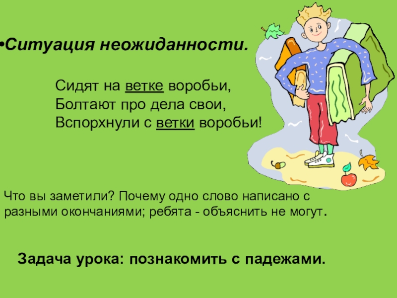 Задача урока: познакомить с падежами.
