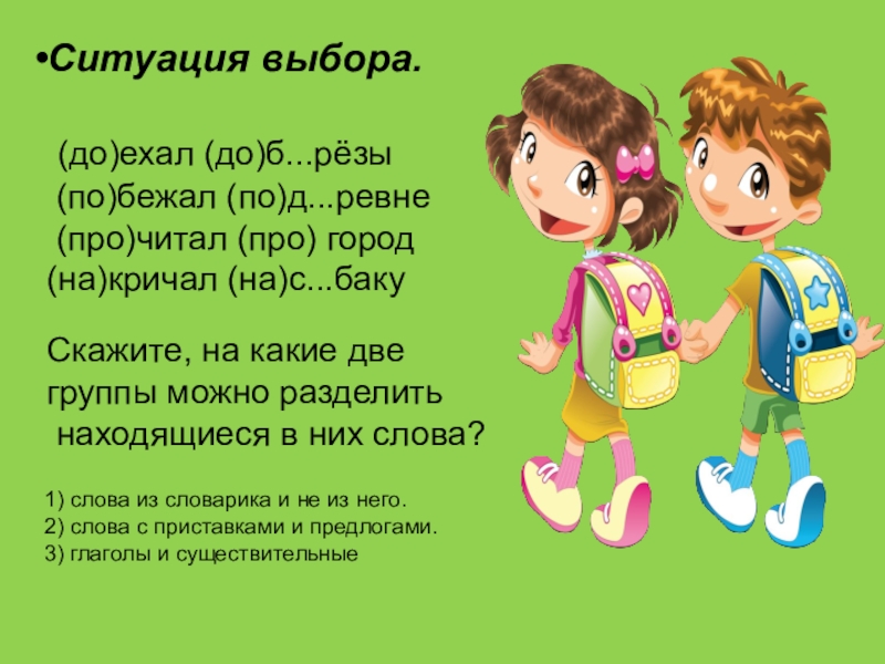 2) слова с приставками и предлогами.