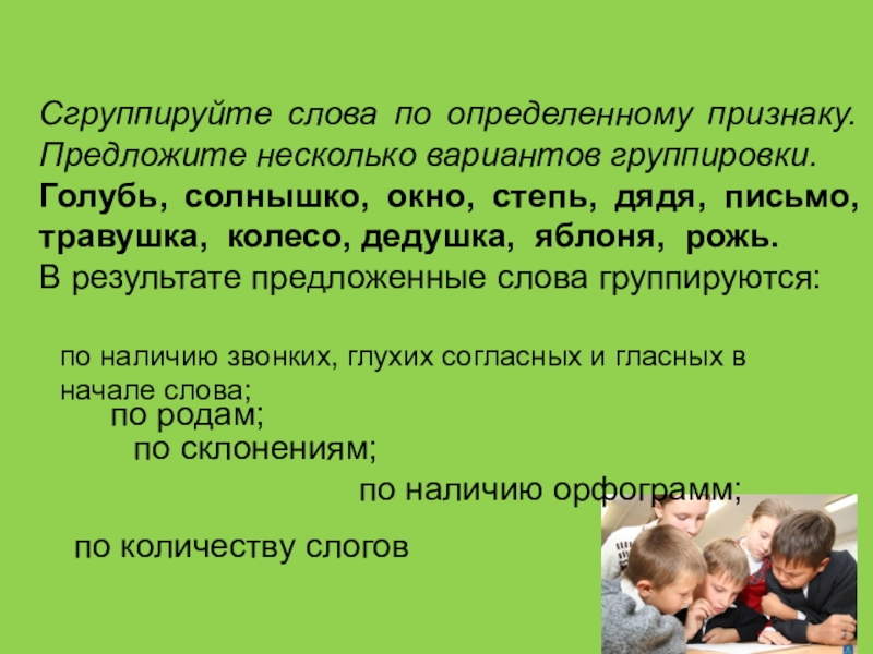 по наличию звонких, глухих согласных и гласных в начале слова;