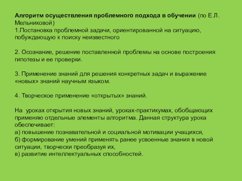 Сущность проблемного обучения в том, что “учащийся под руководством учителя принимает участие в решении новых для него познавательных и практических проблем” И.Я.Лернер