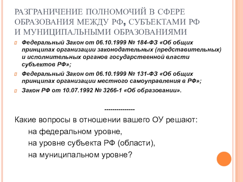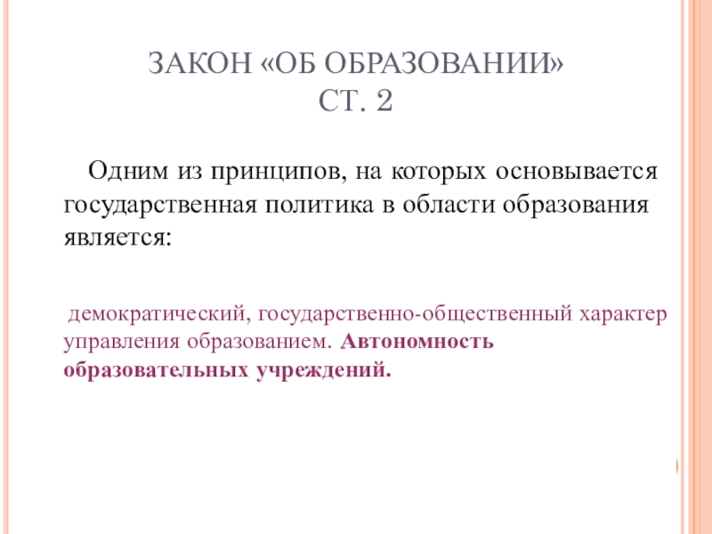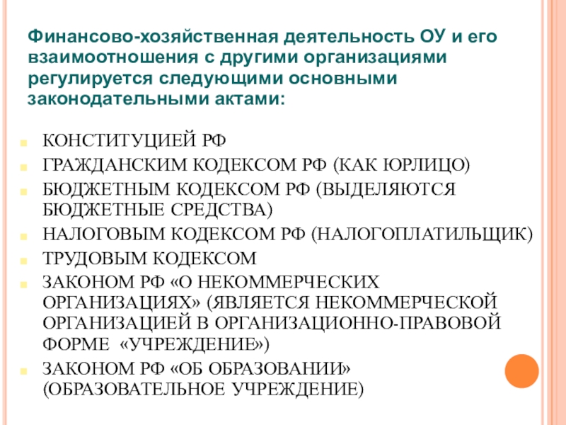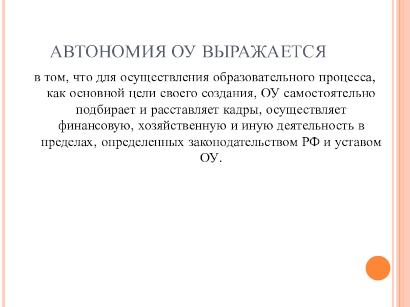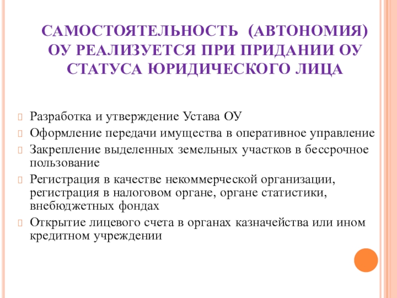 Слайд 58САМОСТОЯТЕЛЬНОСТЬ (АВТОНОМИЯ) ОУ РЕАЛИЗУЕТСЯ ПРИ ПРИДАНИИ ОУ СТАТУСА ЮРИДИЧЕСКОГО ЛИЦА
