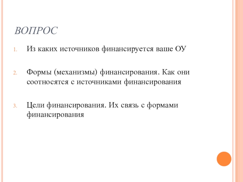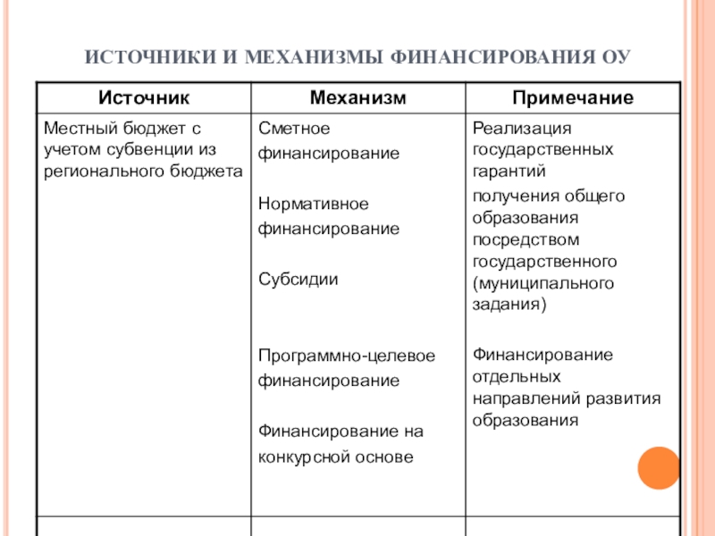 Слайд 66ИСТОЧНИКИ И МЕХАНИЗМЫ ФИНАНСИРОВАНИЯ ОУ