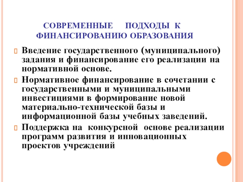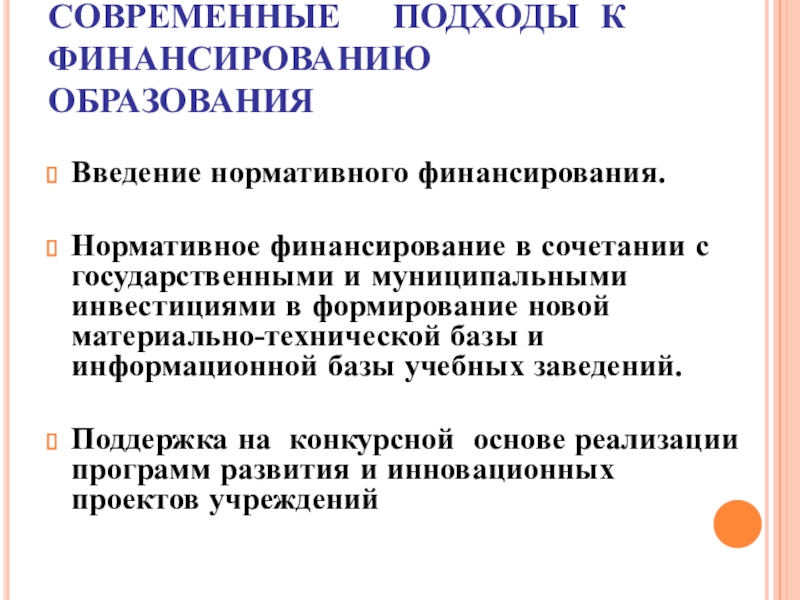 Слайд 63СОВРЕМЕННЫЕ ПОДХОДЫ К ФИНАНСИРОВАНИЮ ОБРАЗОВАНИЯ