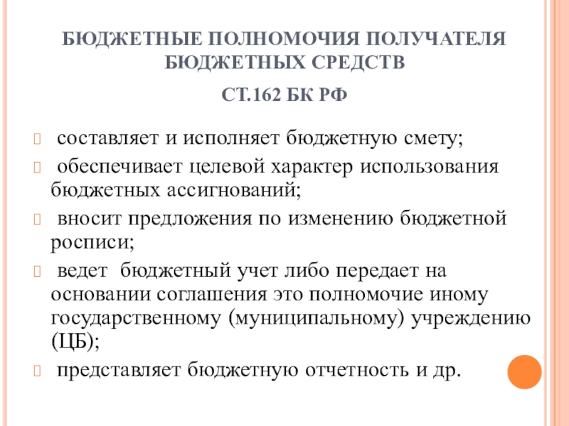 Слайд 70БЮДЖЕТНЫЕ ПОЛНОМОЧИЯ ПОЛУЧАТЕЛЯ БЮДЖЕТНЫХ СРЕДСТВ