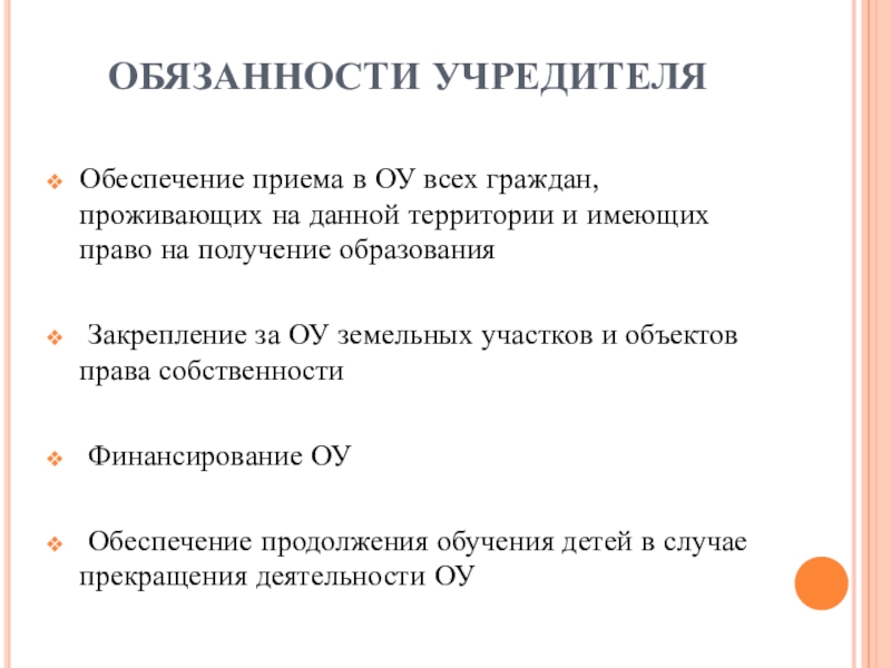 Слайд 57ОБЯЗАННОСТИ УЧРЕДИТЕЛЯ