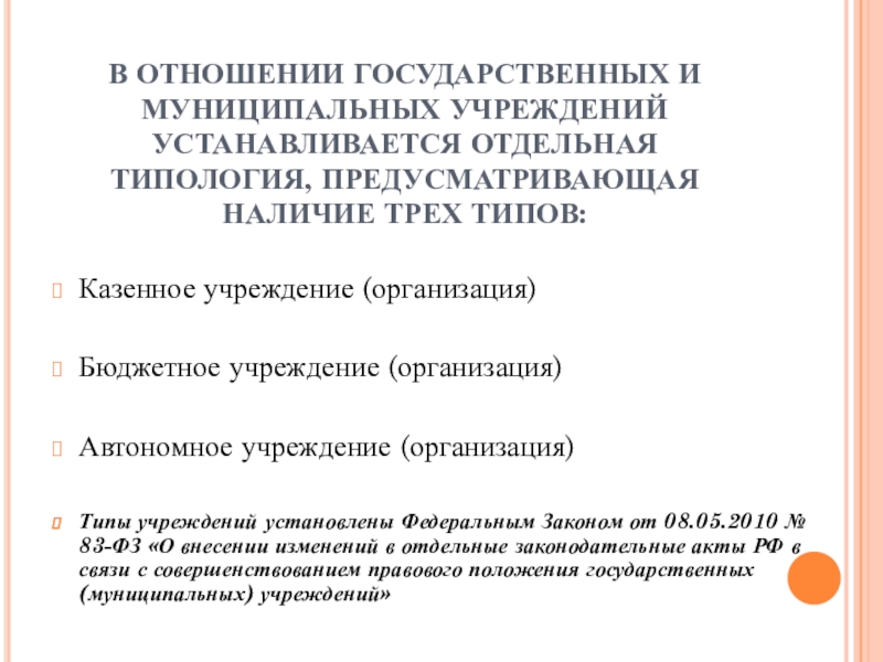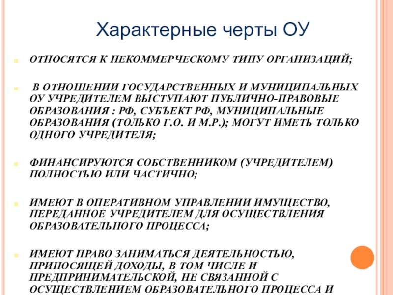 САМОСТОЯТЕЛЬНОСТИ ОУ В ЗАВИСИМОСТИ ОТ ОРГАНИЗАЦИОННО ПРАВОВОЙ ФОРМЫ