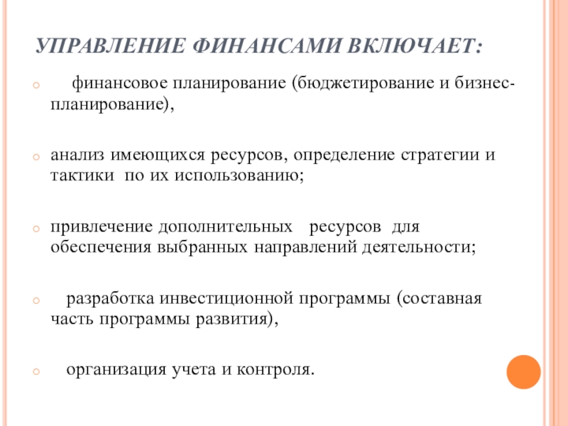 Слайд 71УПРАВЛЕНИЕ ФИНАНСАМИ ВКЛЮЧАЕТ: