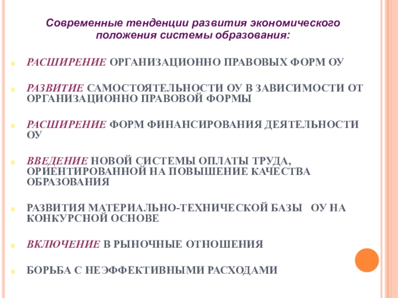 Слайд 14Современные тенденции развития экономического положения системы образования: